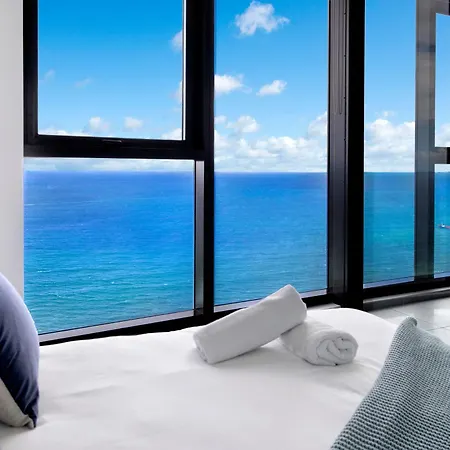 Ocean Beachfront 2 Bedroom Sky View Apartment- Lvl 40! 골드코스트는 사우스포트 요트 클럽에서 3km 떨어져 있습니다. 이 아파트는 2개의 침실과 2개의 욕실이 있습니다.
